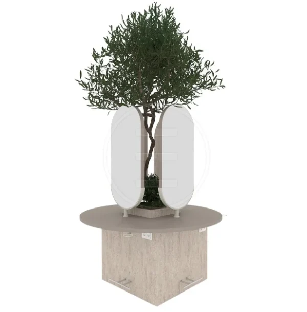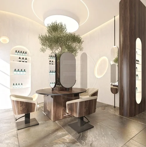 Postul de lucru de coafor Alpeda LADURE aduce o notă estetică și liniștitoare în centrul saloanelor, inspirându-se din natură. Zona vegetală din centru adaugă căldură și caracter spațiului prin aspectul său natural.