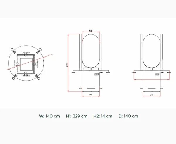 Forma sa circulară permite o experiență multi-utilizator, oferind o servire fluidă și simultană. Corpul și structura mesei din MDF combină robustețea cu un aspect cald. În timp ce detaliul treptei din oțel inoxidabil oferă igienă și confort; uscătorul de păr integrat sub polita oferă o zonă de utilizare organizată și eficientă.