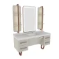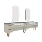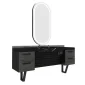 Forma sa circulară permite o experiență multi-utilizator, oferind o servire fluidă și simultană. Corpul și structura mesei din MDF combină robustețea cu un aspect cald. În timp ce detaliul treptei din oțel inoxidabil oferă igienă și confort; uscătorul de păr integrat sub polita oferă o zonă de utilizare organizată și eficientă.