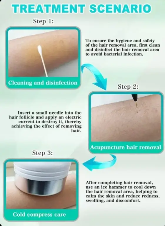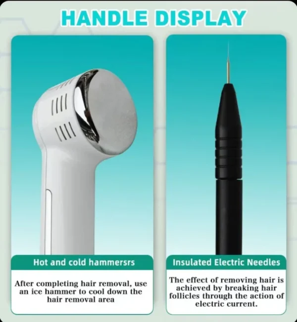 Acest aparat oferă epilare definitivă prin electroliză, combinată cu funcția de ciocan cald și rece pentru o experiență mai confortabilă.