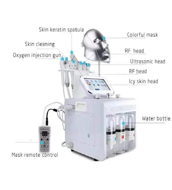 Aparat combina cosmetica 8 in 1 H2O2 cu hydrodermabraziune, jet hidroxigen, radiofrecventa, micro bule indepartare puncte negre, criolift, masca LED