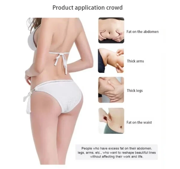 - Vizează zonele cu probleme cum ar fi grăsimea de pe burtă, grăsimea coapsei, bărbia dublă, mânerele de dragoste și partea superioară a brațelor;