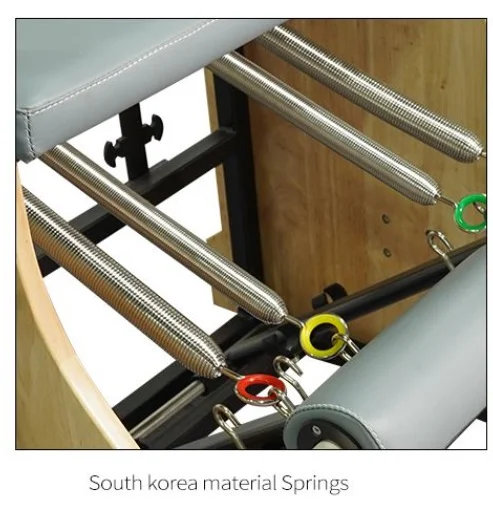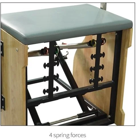 - Scaunul Pilates este dotat cu 4 arcuri care pot fi ajustate la 4 niveluri de rezistență, permițându-vă să efectuați exerciții Pilates pe scaun de diferite intensități.