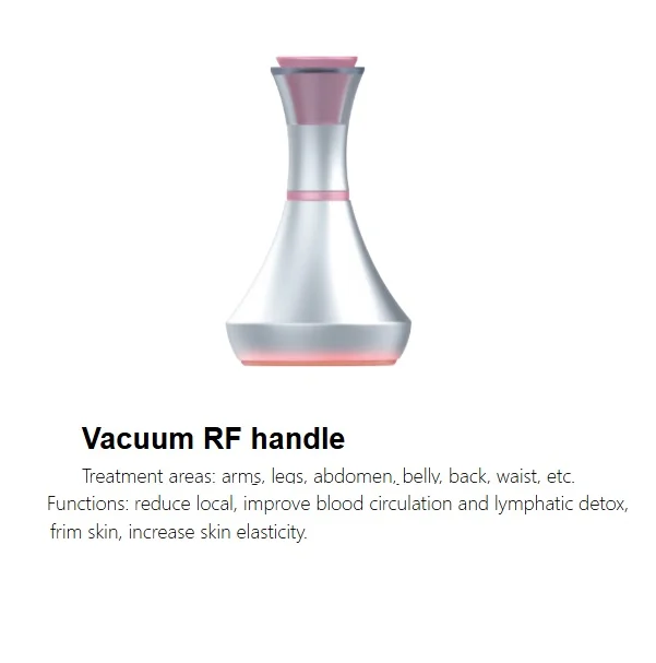 Vacuumul stimulează țesutul de sub piele, accelerează circulația sângelui și activează grăsimile subcutanate, îmbunătățește circulația limfatică, accelerează descompunerea arderii de grăsimi în acizii grași și promovează excreția de toxine și excesul de apă pentru a face pielea mai fermă și mai elastică. RF transformă energia electrică în energie termică pentru a pătrunde adânc în piele și pentru a accelera circulația sângelui și țesutul subcutanat pentru a stimula colagenul, proteinele și reînnoirea celulelor, pentru a înăspri ridurile și alte efecte.