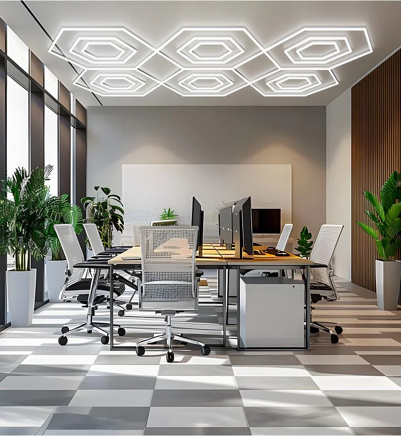 Hexagoanele luminoase LED Honeycomb sunt cele mai in voga corpuri de iluminat pentru saloanele de infrumusetare, barber shop-uri si showroom-uri auto. Ele sunt formate din elemente luminose LED. LED-ul este acoperit de o carcasa PVC ce oferta efectul de unformizare a luminii. Hexagoamele liminoase sunt interconectabile, oferind astfel posibilitatea si oportunitatea de a crea forma dorita si de incradrare perfecta in spatiul destinat.