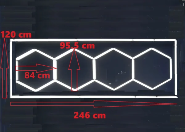Hexagoanele luminoase LED Honeycomb sunt cele mai in voga corpuri de iluminat pentru saloanele de infrumusetare, barber shop-uri si showroom-uri auto. Ele sunt formate din elemente luminose LED. LED-ul este acoperit de o carcasa PVC ce oferta efectul de unformizare a luminii. Hexagoamele liminoase sunt interconectabile, oferind astfel posibilitatea si oportunitatea de a crea forma dorita si de incradrare perfecta in spatiul destinat.