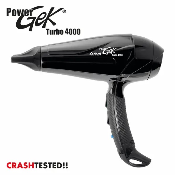 - Ceriotti SUPER GEK 3800 este cel mai emblematic uscător de păr profesional, recunoscut la nivel mondial și distribuit pe scară largă pentru robustețea, ergonomia și durabilitatea sa.